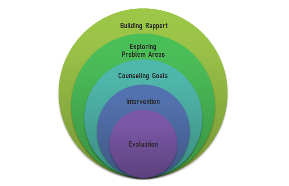 At the primary stage, the counselor builds the foundational relationship with the client. This is the most crucial stage that leads the later part of the counseling process to have a successful intervention. It helps the client to establish trust in the counselor, in turn the counselor gets to know his/her client. The rapport between the counselor and the client sets the tone for rest of the therapeutic stages. The counselor must be open, welcoming, and empathetic towards the client.